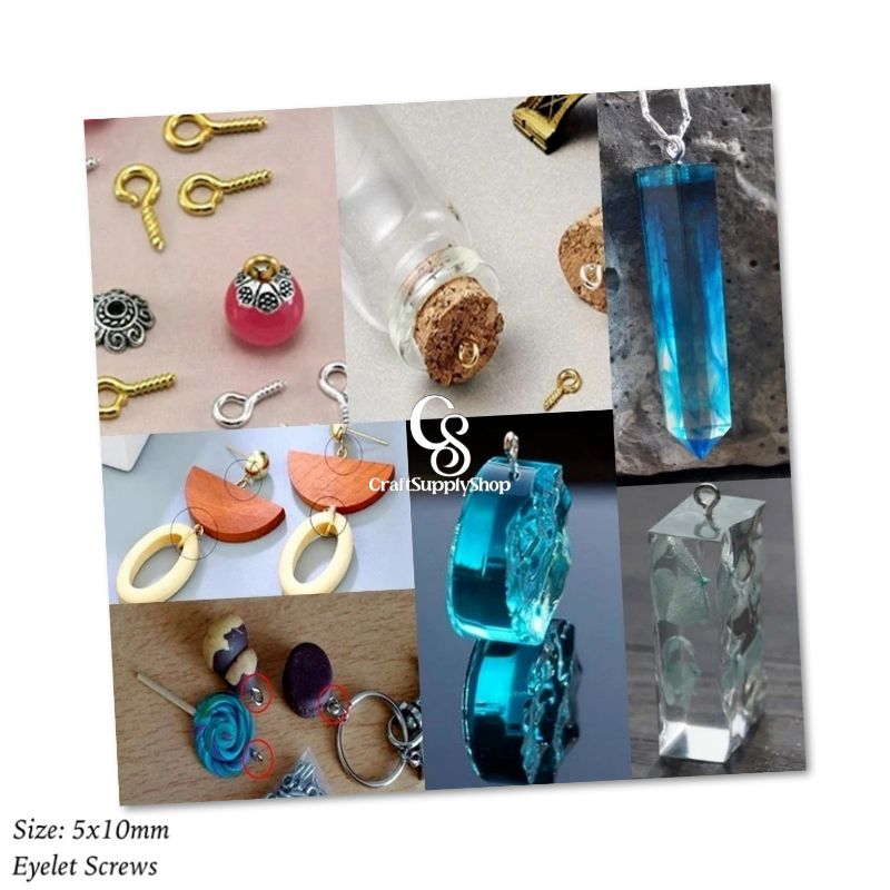 5 x 10mm Eye Screw Pins | Metal Screw Eye Pins Hooks for DIY Jewelry Making, Arts & Crafts Project, resin craft | Screw in Eye Hooks